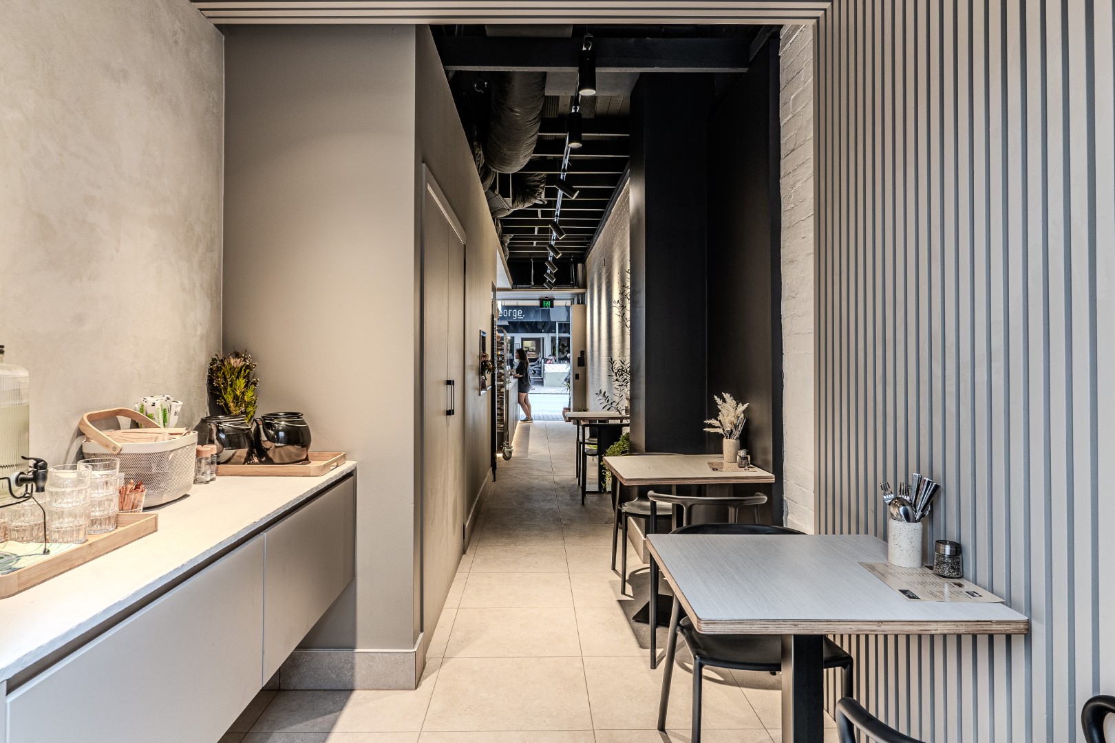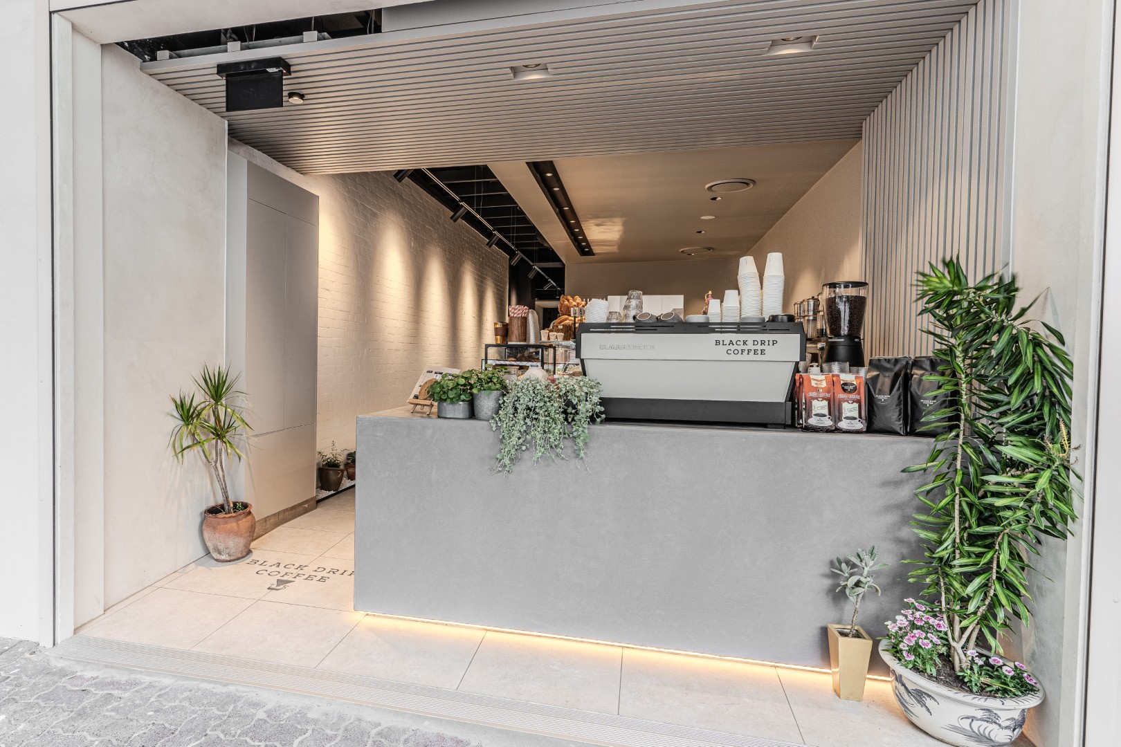 This fitout for Black Drip Coffee transforms a narrow tenancy into a refined, light-filled café that celebrates texture, rhythm, and flow. Delivered by ENP Fitouts, the space layers soft concrete counters, warm timber battens, and exposed brick to balance raw and refined elements. Linear ceiling details guide movement from the street through to the secluded courtyard, where greenery and natural light create a calm retreat from the city. Every detail from the concealed lighting and custom counterwork to the polished finishes was crafted for seamless functionality and understated elegance, shaping a distinctive destination that feels both contemporary and inviting.